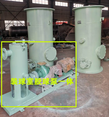 3、裝球室:裝球室是膠球清洗裝置中用于放球、取球、存儲(chǔ)和觀察膠球循環(huán)情況的裝置:它由外殼、漏斗、切換閥等部件組成,并配有觀察窗、放氣閥、放水閥。ZQS型裝球室(膠球存儲(chǔ)器)